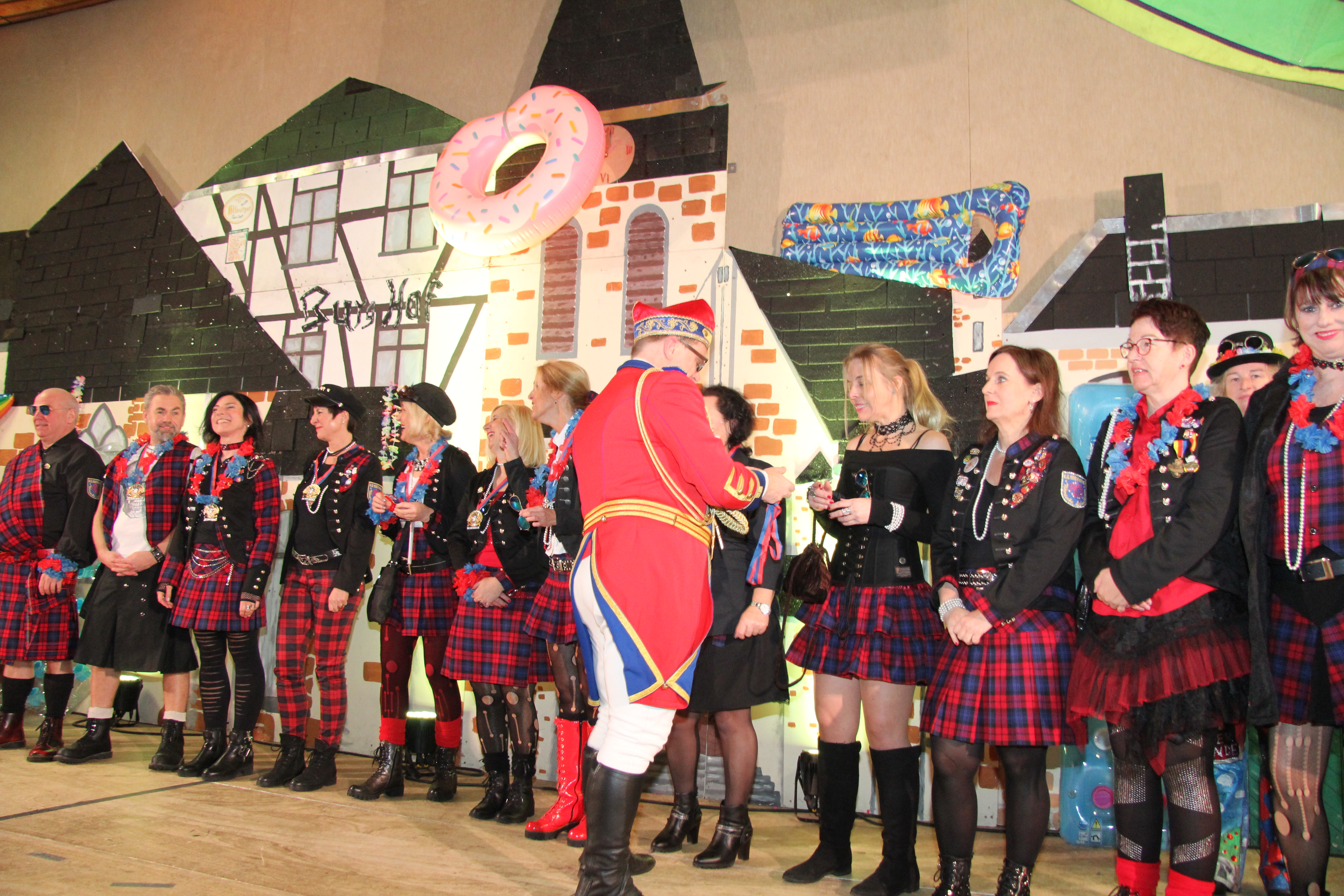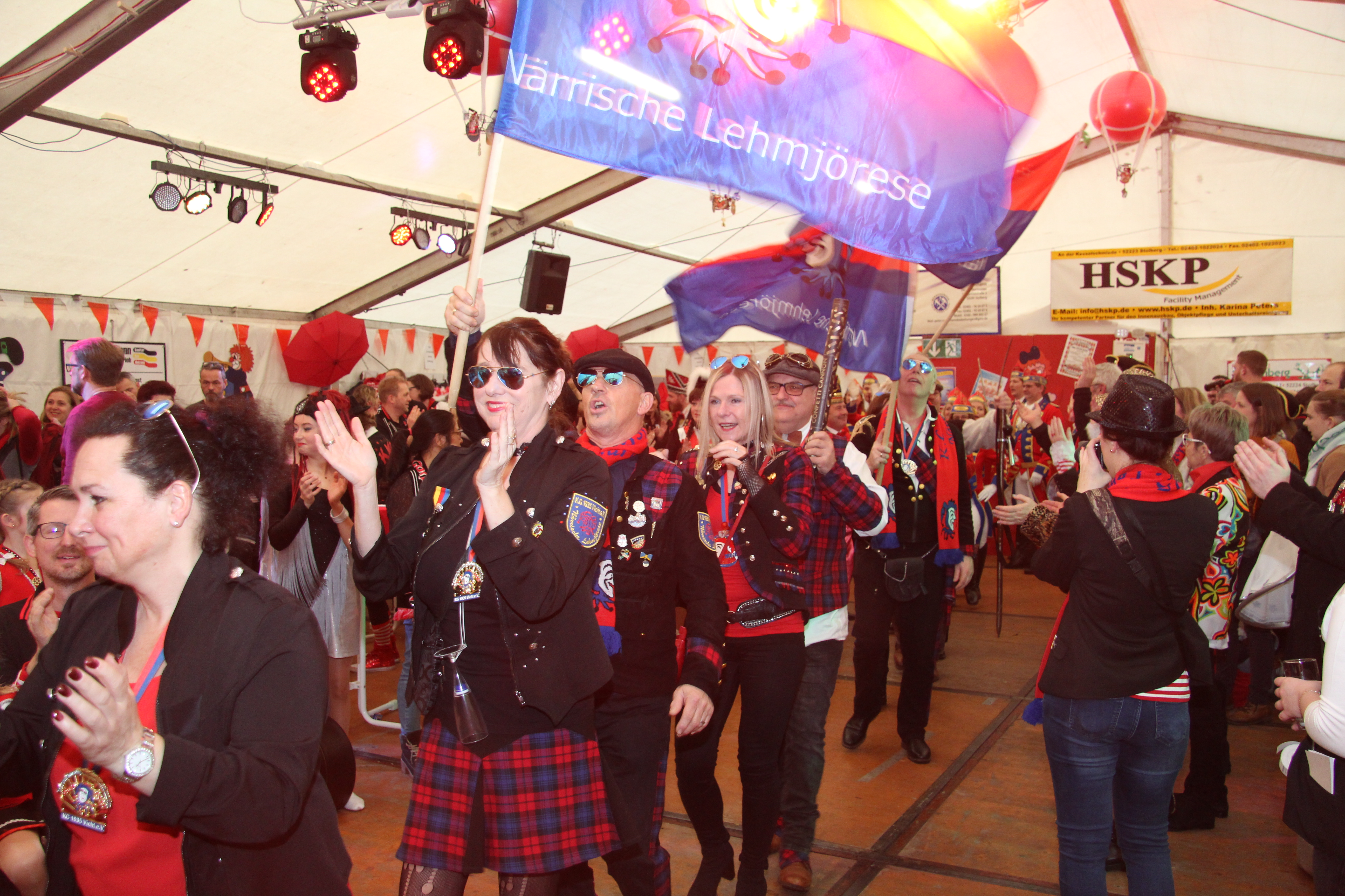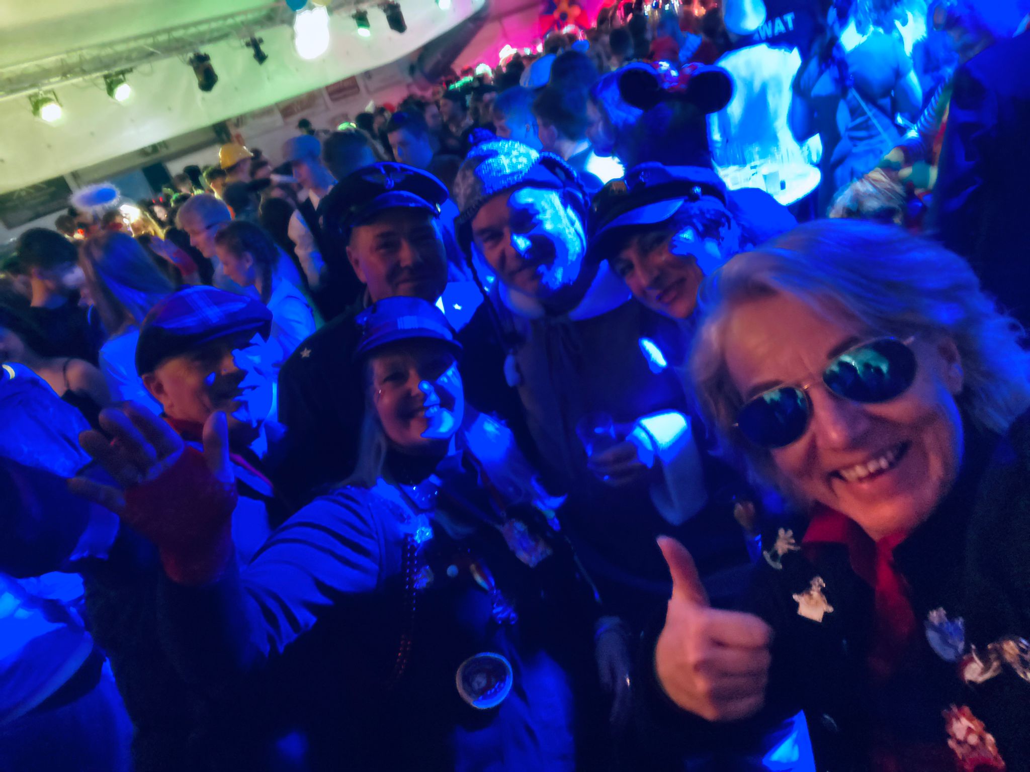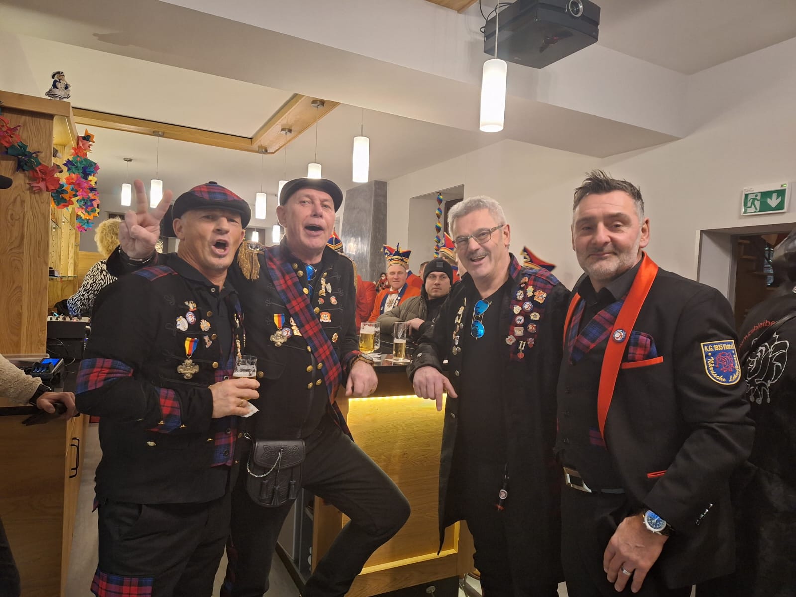 Die Veeter Fründe studieren jede Session einen neuen Auftritt ein, bei dem ein Medley aus aktuellen oder auch bekannten Stimmungslieder selbst eingesungen und dann als Showeinlage dargeboten wird. Nicht perfekt .... aber „Spaß an der Freud" ist was zählt.