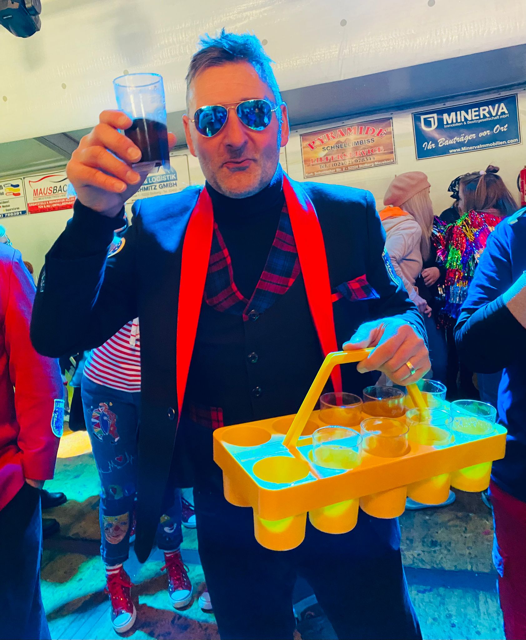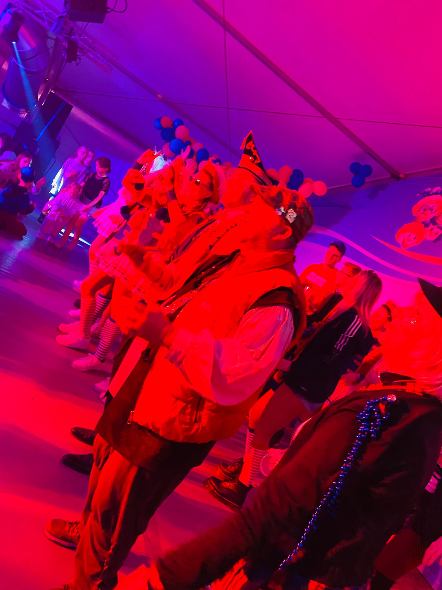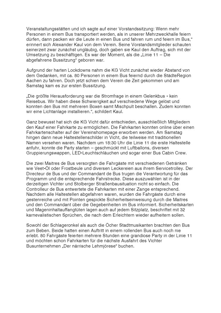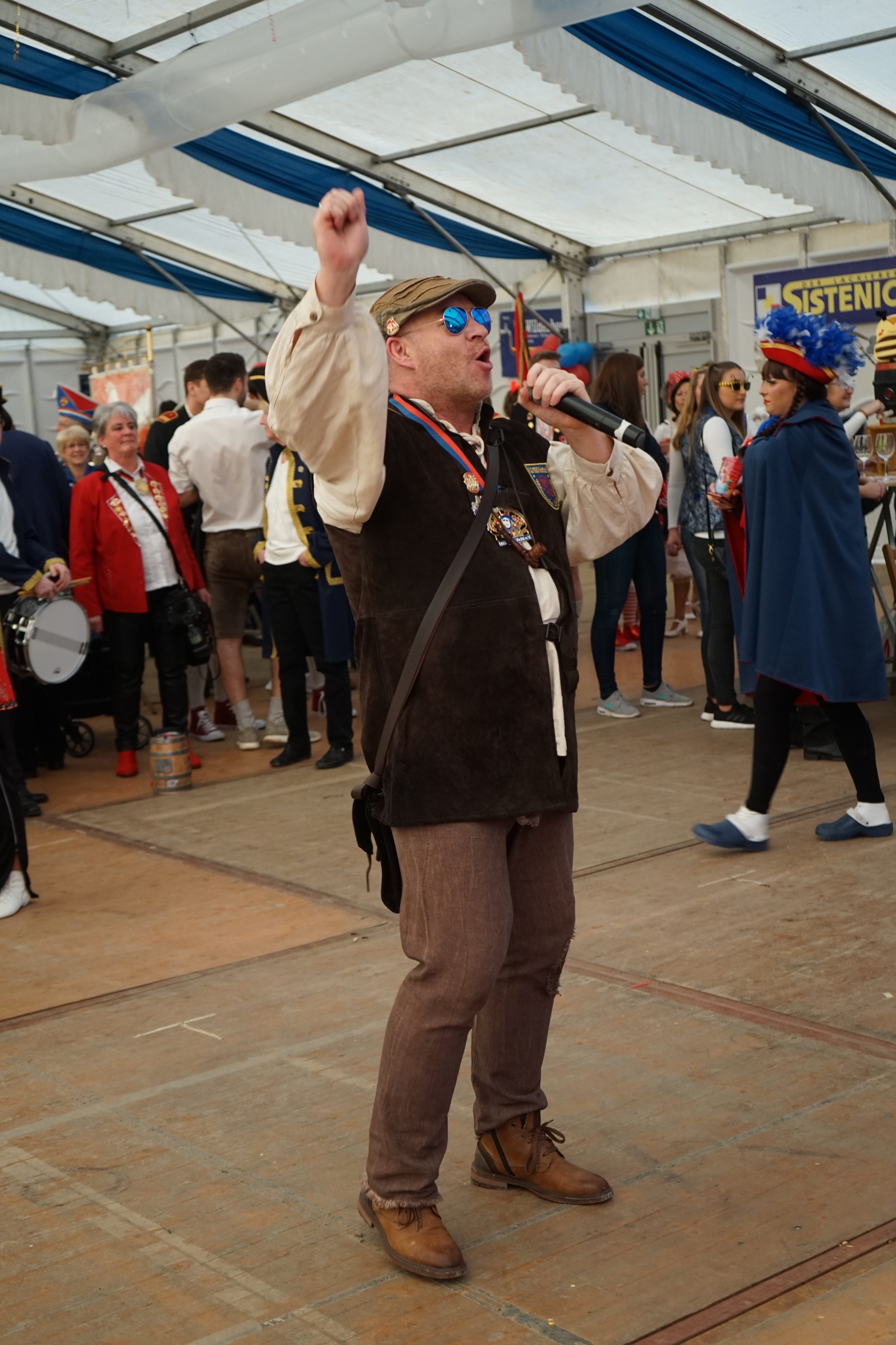 Die Veeter Fründe studieren jede Session einen neuen Auftritt ein, bei dem ein Medley aus aktuellen oder auch bekannten Stimmungslieder selbst eingesungen und dann als Showeinlage dargeboten wird. Nicht perfekt .... aber „Spaß an der Freud" ist was zählt.